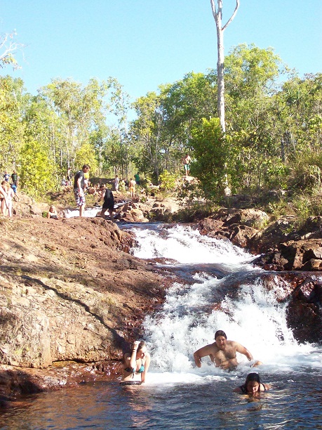 All the falls and plunge pools we’ve been to have all been fresh water which as most people know, as being crocodile territory; freshies and salties. All these waterways allow swimming unless there has been a sighting of any type of crocodile. But things do seem to slip between the lines. After visiting the NP, a day later in the NT newspaper told of a lady receiving bite wounds from a salt water crocodile not far from where we were swimming. Note to self: only swim when it says its “open” and when there is a hell of a lot of people around.